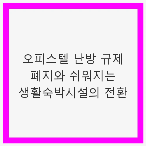 최근 우리 사회는 다양한 주거 형태와 생활 환경을 요구하고 있습니다. 특히, 1인 가구의 증가와 재택근무의 확산으로 인해 기존의 주거 규제가 변화해야 한다는 목소리가 커지고 있습니다. 이에 따라 정부는 오피스텔의 난방 규제를 폐지하고 생활숙박시설의 전환을 지원하는 정책을 발표하였습니다. 이번 글에서는 이러한 변화가 주거 환경에 미치는 영향과 그 배경을 살펴보겠습니다.